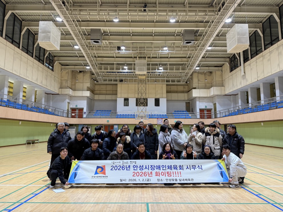 2026년 안성시장애인체육회 시무식 페이지 정보 작성자작성자 : 관리자 조회조회수 : 268회 작성일작성일 : 26-01-20 17:01 본문 2026년 안성시장애인체육회 시무식 목록 다음글2025 안성맞춤 발달장애인 가족 스포츠캠프 25.07.04